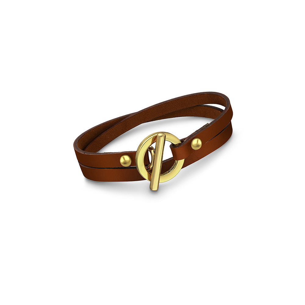 Stainless Steel Leather Bracelet with Gold Bar Lock
