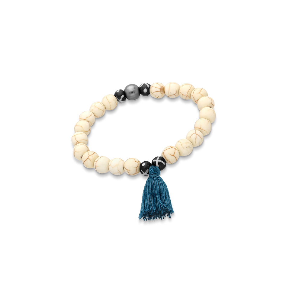 Tassel Bracelet with Hematite, Wood and Howlite Beads